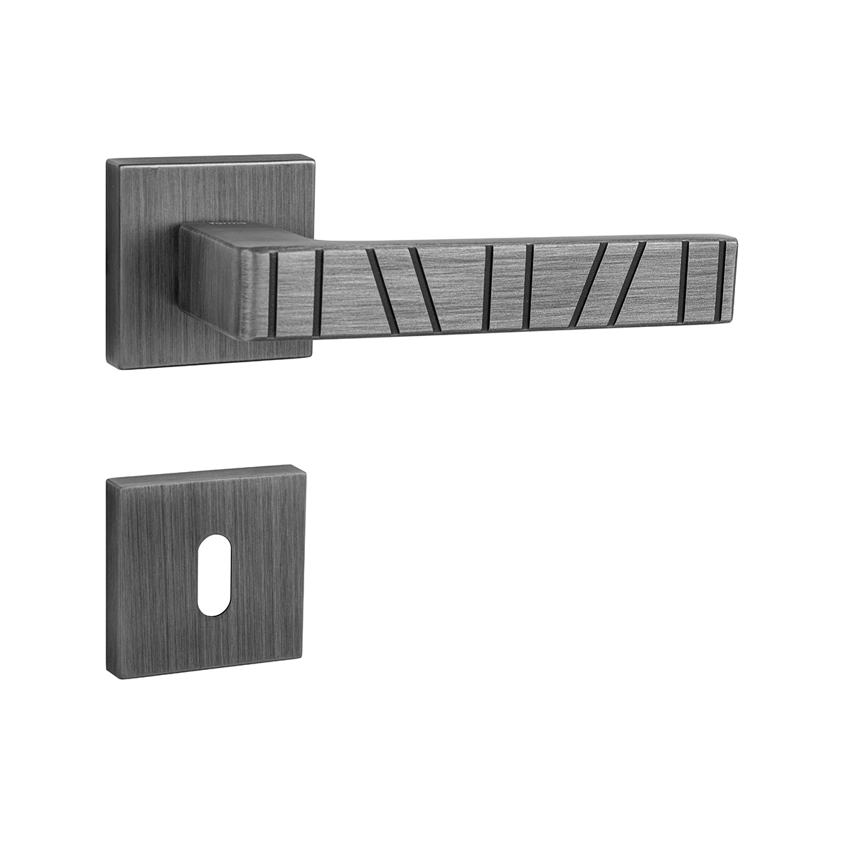 Rozetová kľučka na interiérové dvere s hranatou rozetou je vyrobená z materiálov vysokej kvality – zamak a je povrchovo upravená. Rozeta má rozmery 50 x 50 mm a hrúbku 10 mm.