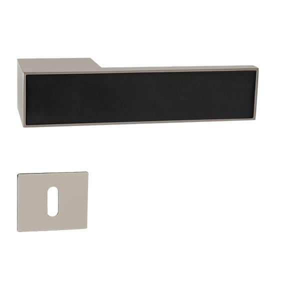 Rozetová kľučka na interiérové dvere s obdĺžnikovou rozetou je vyrobená z materiálov vysokej kvality – zamak a je povrchovo upravená. Rozeta má rozmery 52 mm x 48 mm a hrúbku 2 mm. Samotná rozeta je súčasťou dizajnu kľučky.