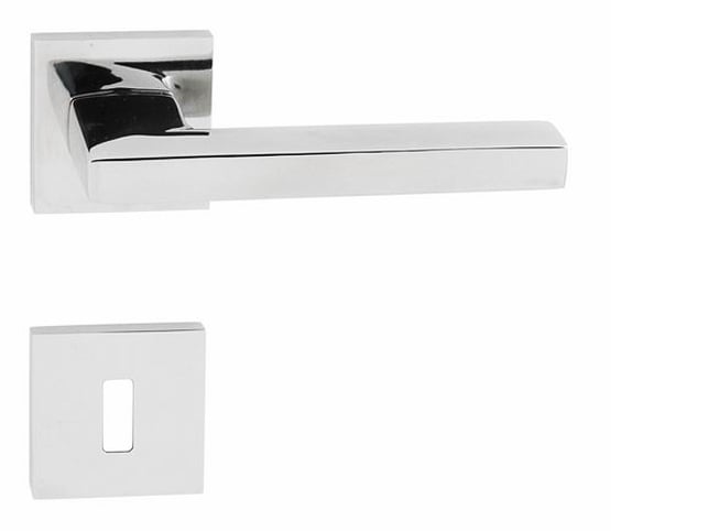 Rozetová kľučka na interiérové dvere s hranatou rozetou z vysokokvalitnej nehrdzavejúcej ocele, známej ako nerez a je povrchovo upravená.