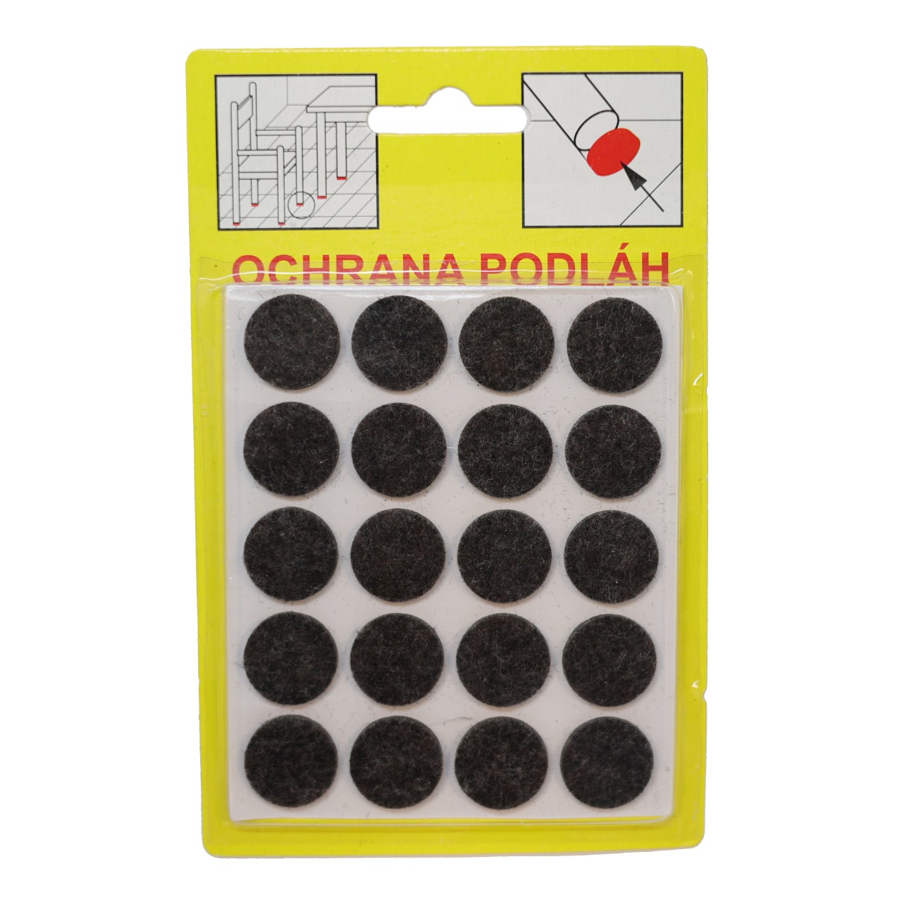 Podložky Filcové samolepiace Hnedé, Typ 102 – priemer 16 mm, hr. 3 mm, 20 ks/bal