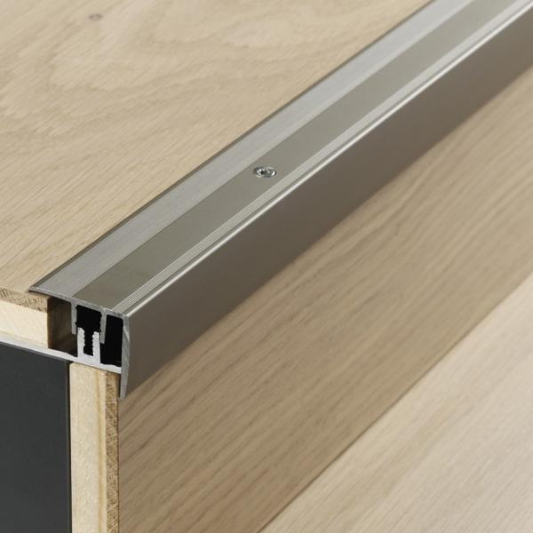 Stair edge profile in aluminium for engineered wood flooring Stainless steel,floor coverings 8–18mm, solid steel, 1739878, 2600x52x0 mm