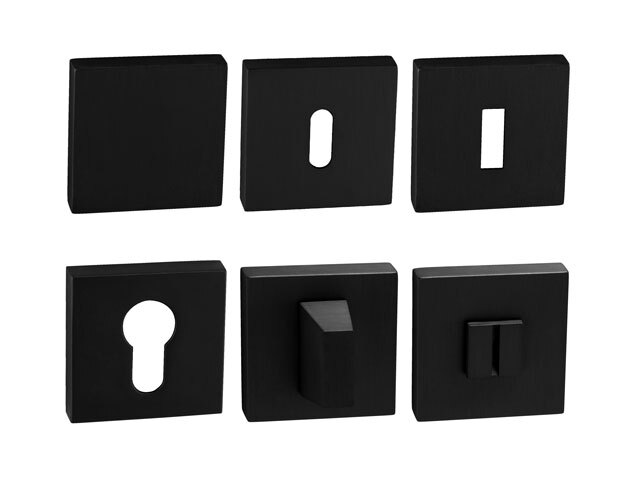 Hranatá rozeta je vyrobená z materiálov vysokej kvality – mosadz a je povrchovo upravená. Rozeta má rozmery 52 mm x 52 mm, hrúbku 11 mm a oválny otvor pre interiérový kľúč (BB), hranatý otvor pre interiérový klúč (BBQ), otvor pre cylindrickú vložku (PZ), WC set s vmontovaným kľúčom alebo rozetu bez otvoru tzv. záslepka. Balenie obsahuje 2 kusy roziet (pár) a rozety WC sú v balení ako set.